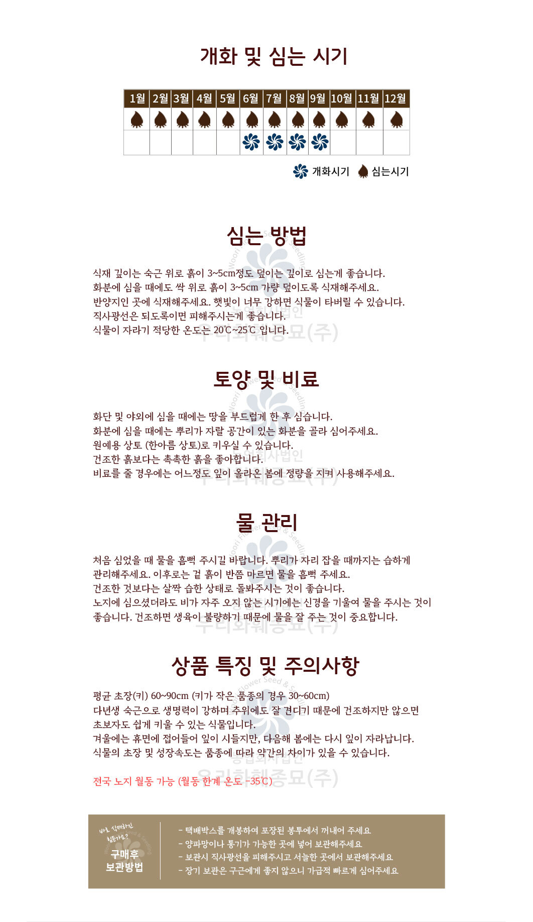 - 상품 교환 및 문의: 카카오톡에 우리화훼종묘를 검색하여 문의 혹은 게시판 1:1 이용